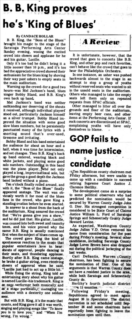 B.B. King, Bobby "Blue" Bland, Candace Hollar, Saratoga Performing Arts Center, Saratogian