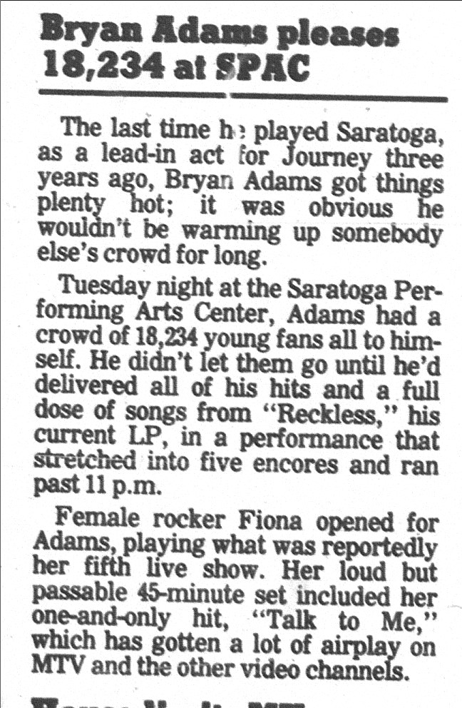 Bryan Adams, Fiona, Saratoga Performing Arts Center, Saratogian