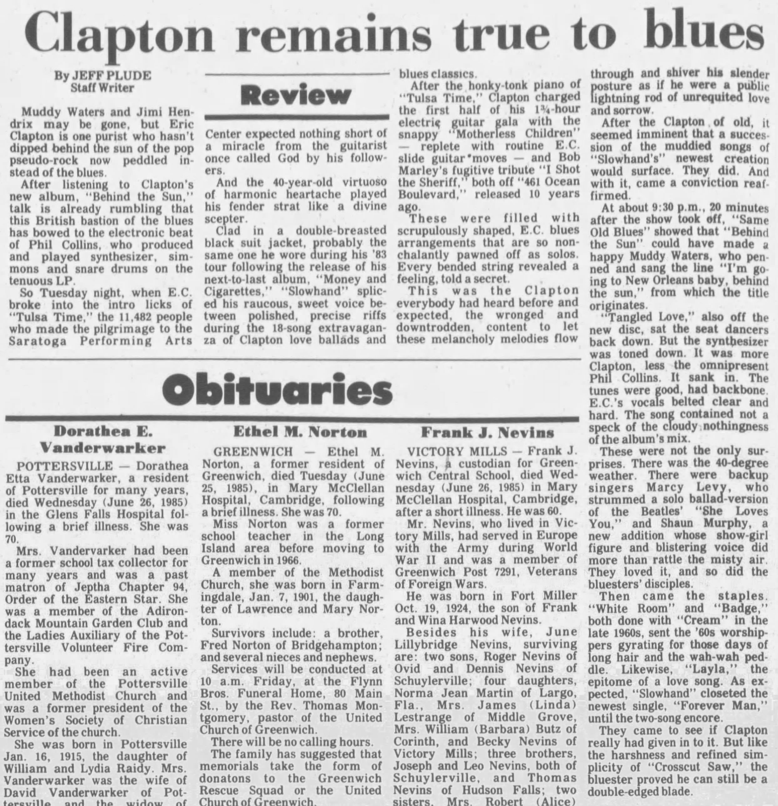 Eric Clapton, Jeff Plude, Post-Star, Saratoga Performing Arts Center