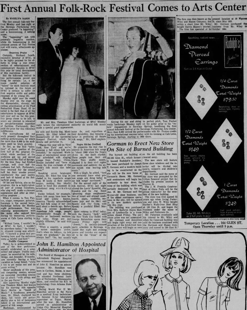 Ian & Sylvia, Jim Kweskin, Lovin' Spoonful, Marilyn Nason, Paul Butterfield, Post-Star, Saratoga Performing Arts Center, Spanky and Our Gang, Theodore Bikel, Tom Paxton