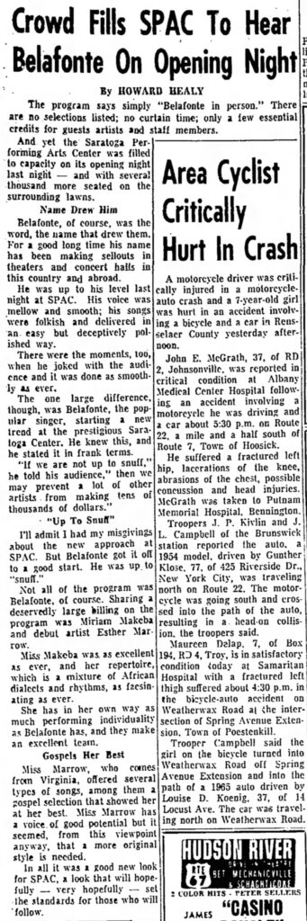Esther Marrow, Harry Belafonte, Howard Healy, Miriam Makeba, Saratoga Performing Arts Center, Times Record