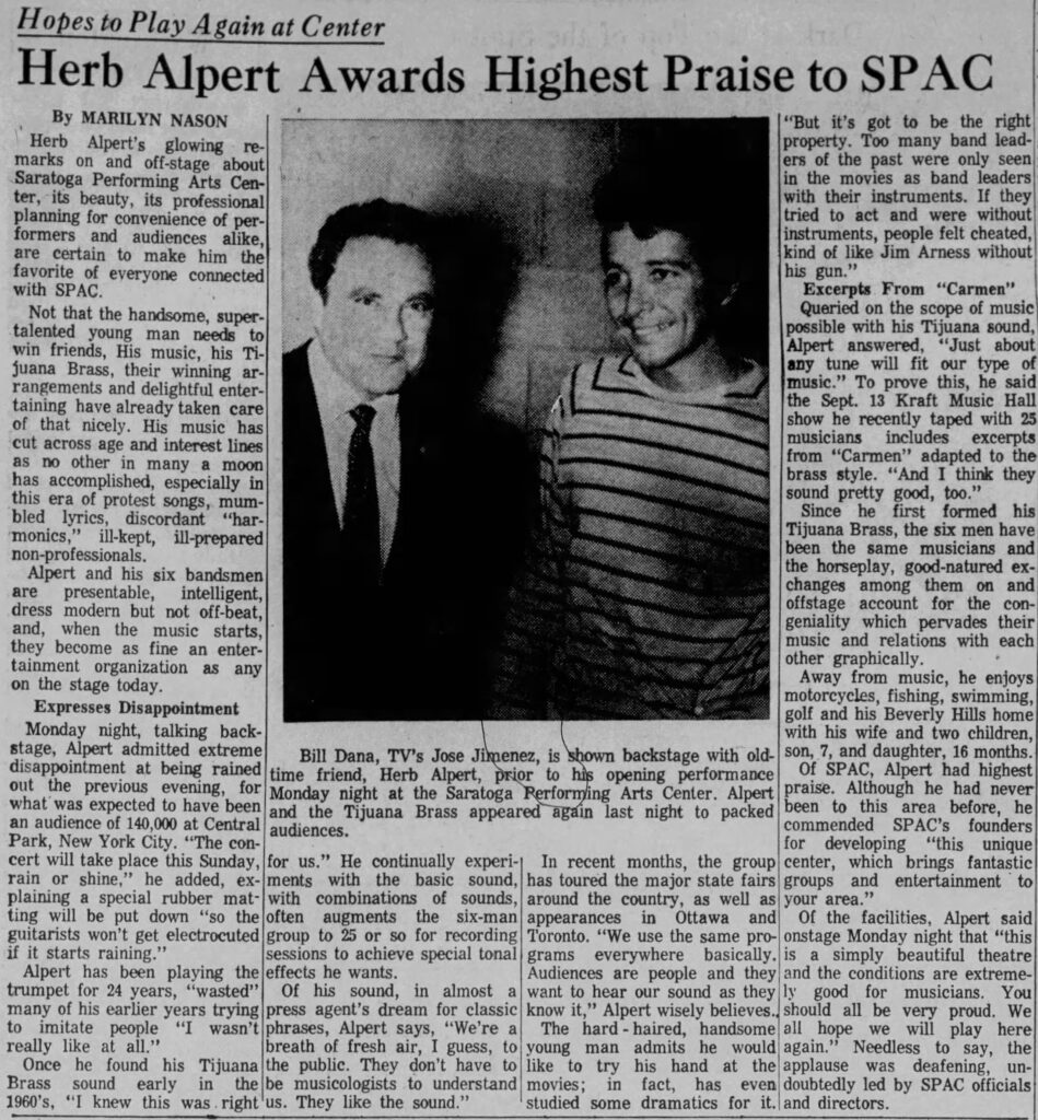 Herb Alpert, Marilyn Nason, Post-Star, Saratoga Performing Arts Center