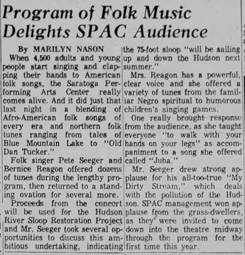 Bernice Reagon, Marilyn Nason, Pete Seeger, Post-Star, Saratoga Performing Arts Center