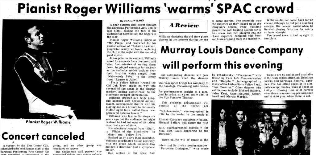Craig Wilson, Roger Williams, Saratoga Performing Arts Center, Saratogian