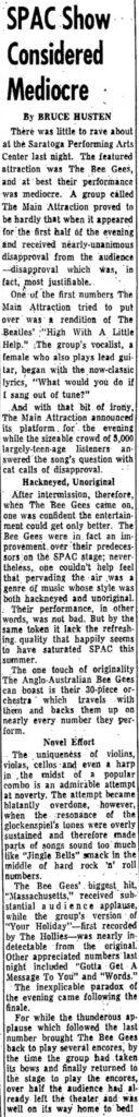 Bee Gees, Bruce Husten, Main Attraction, Saratoga Performing Arts Center, Times Record