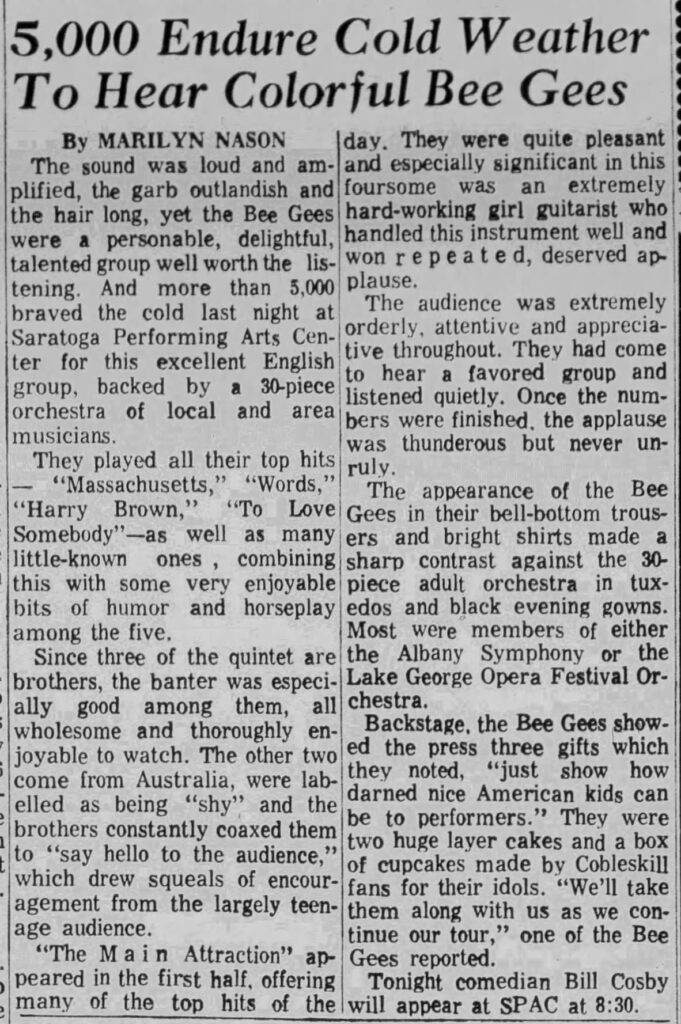Bee Gees, Main Attraction, Marilyn Nason, Post-Star, Saratoga Performing Arts Center