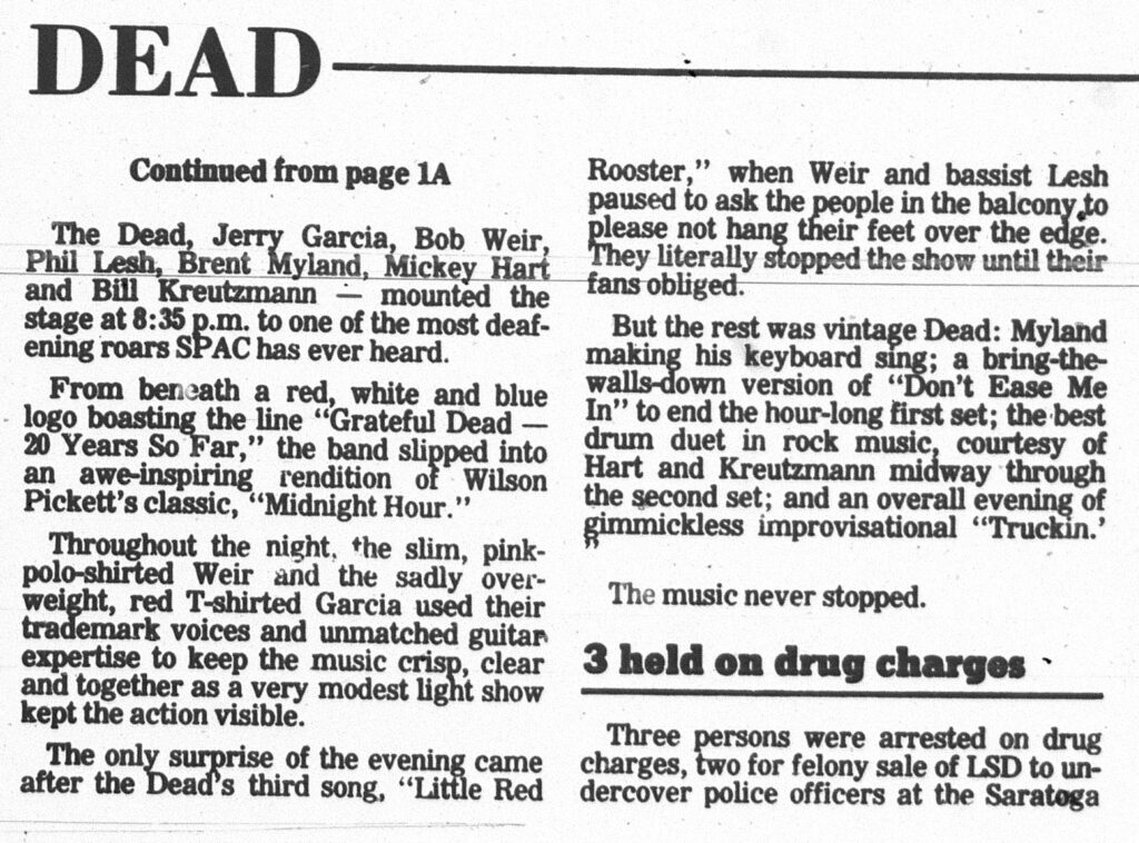 Bruce Squiers, Grateful Dead, Jeremy Schiffres, Saratoga Performing Arts Center, Saratogian
